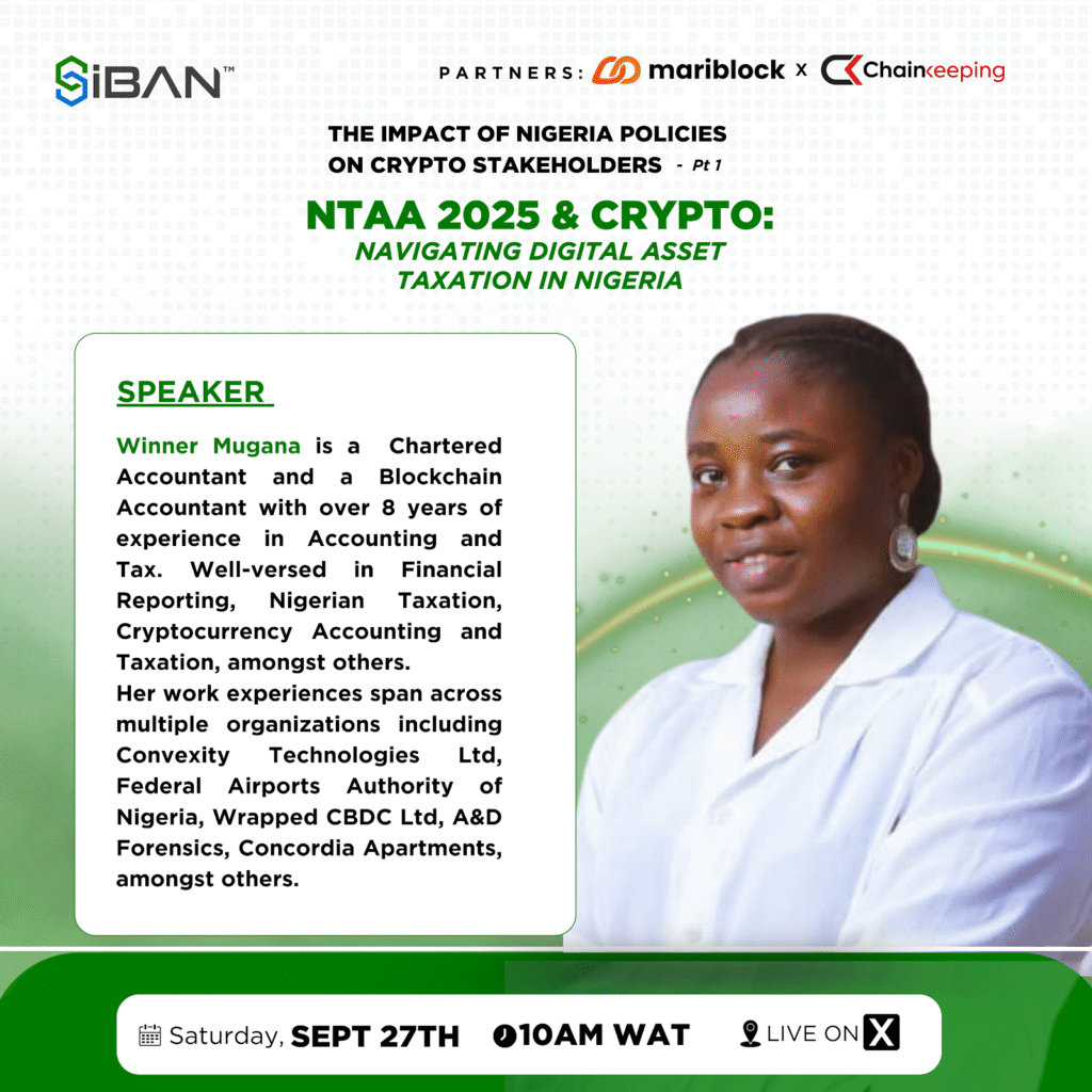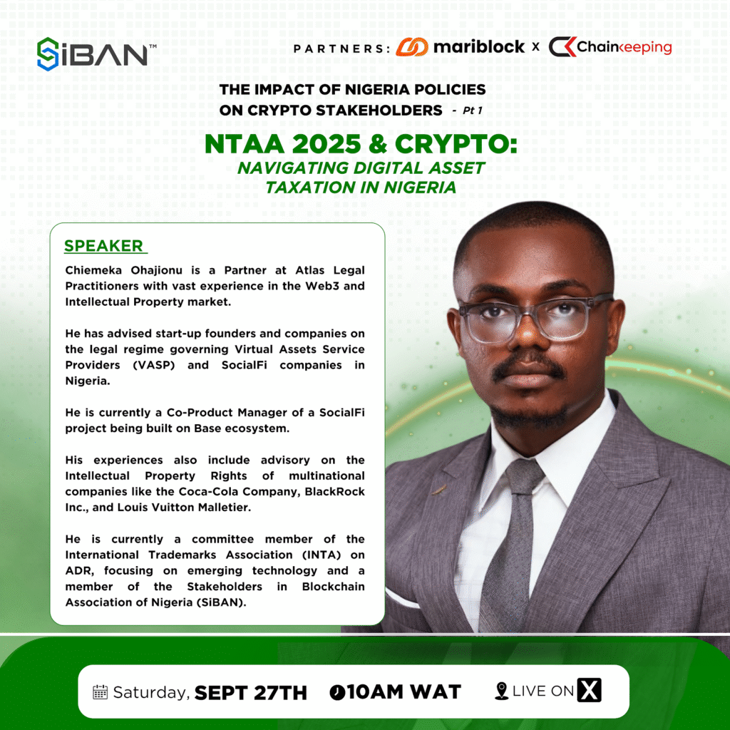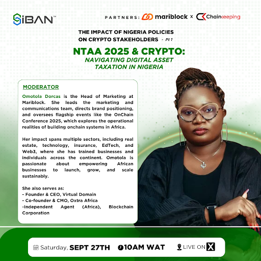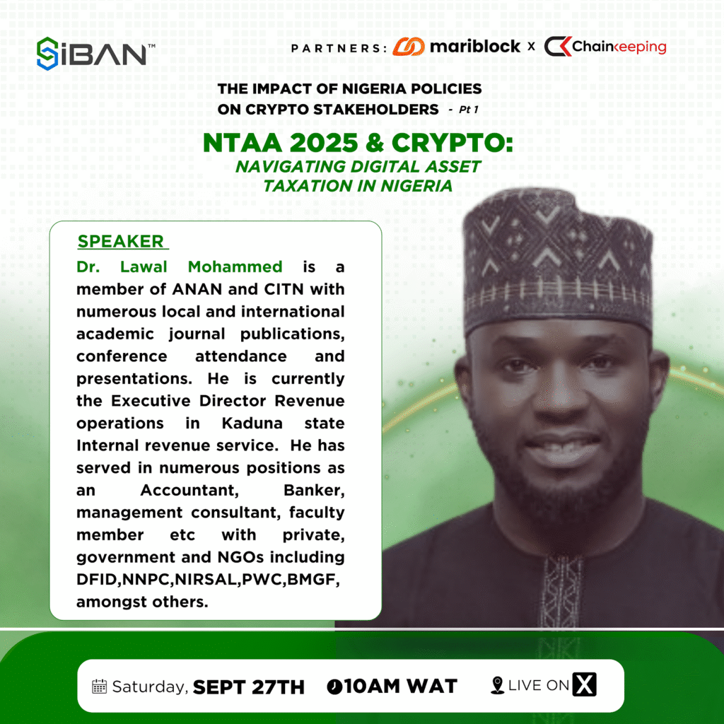 This call was made during the recent X (twitter) space, “NTAA 2025 & Crypto: Navigating Digital Asset Taxation in Nigeria”, convened by SiBAN in partnership with Mariblock and Chainkeeping. The session provided a platform for dialogue between industry leaders, tax experts, and stakeholders to unpack the implications of the NTAA 2025 and the opportunities it presents.